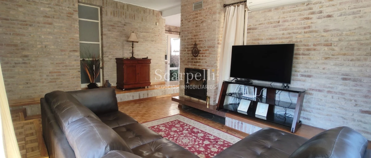 Living Comedor en desnivel todo con pisos de parquet, amplios ventanales & Estufa hierro Alto Rendimiento Nueva.-